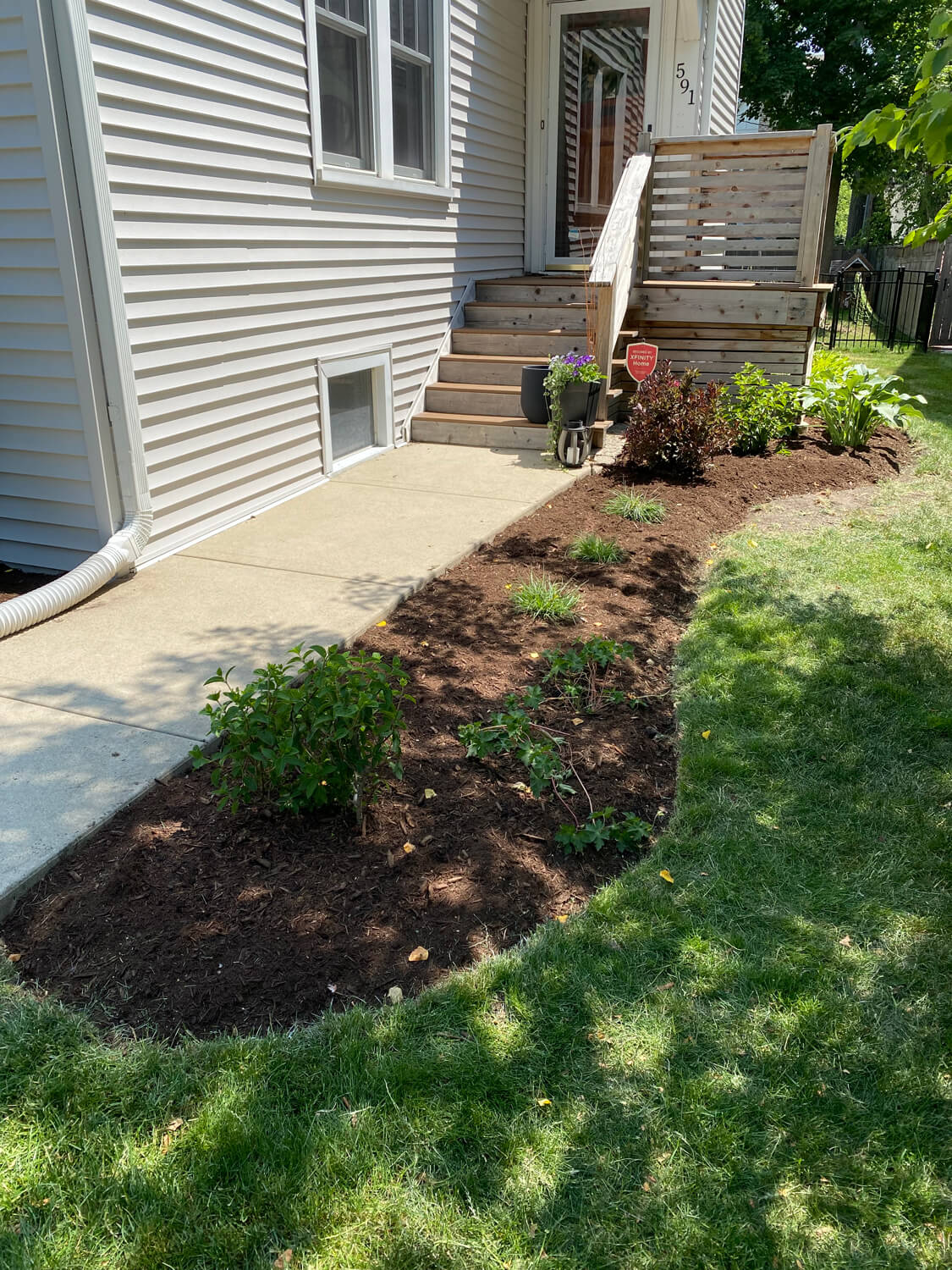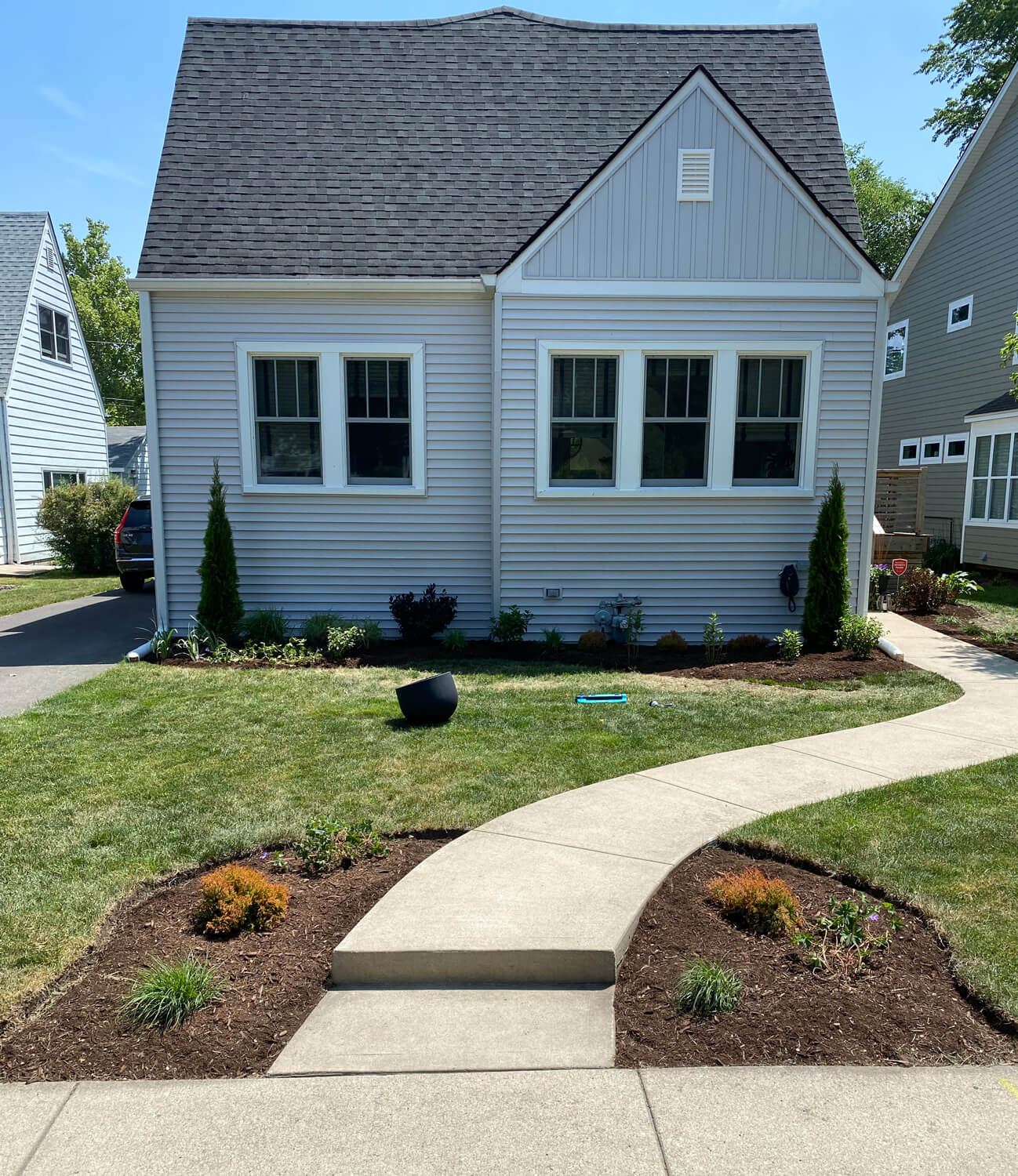 Our mission for this front yard renovation was to enhance the front entrance and boost the overall curb appeal of our client’s home. To achieve this, we utilized the existing sidewalk’s curvature as a blueprint, shaping and flowing the new beds accordingly. This not only provides a natural pathway to the front door but also elevates the entire appearance of the entrance. By integrating these graceful curves into the landscape, we granted this home a unique and captivating look, setting it apart from any other.