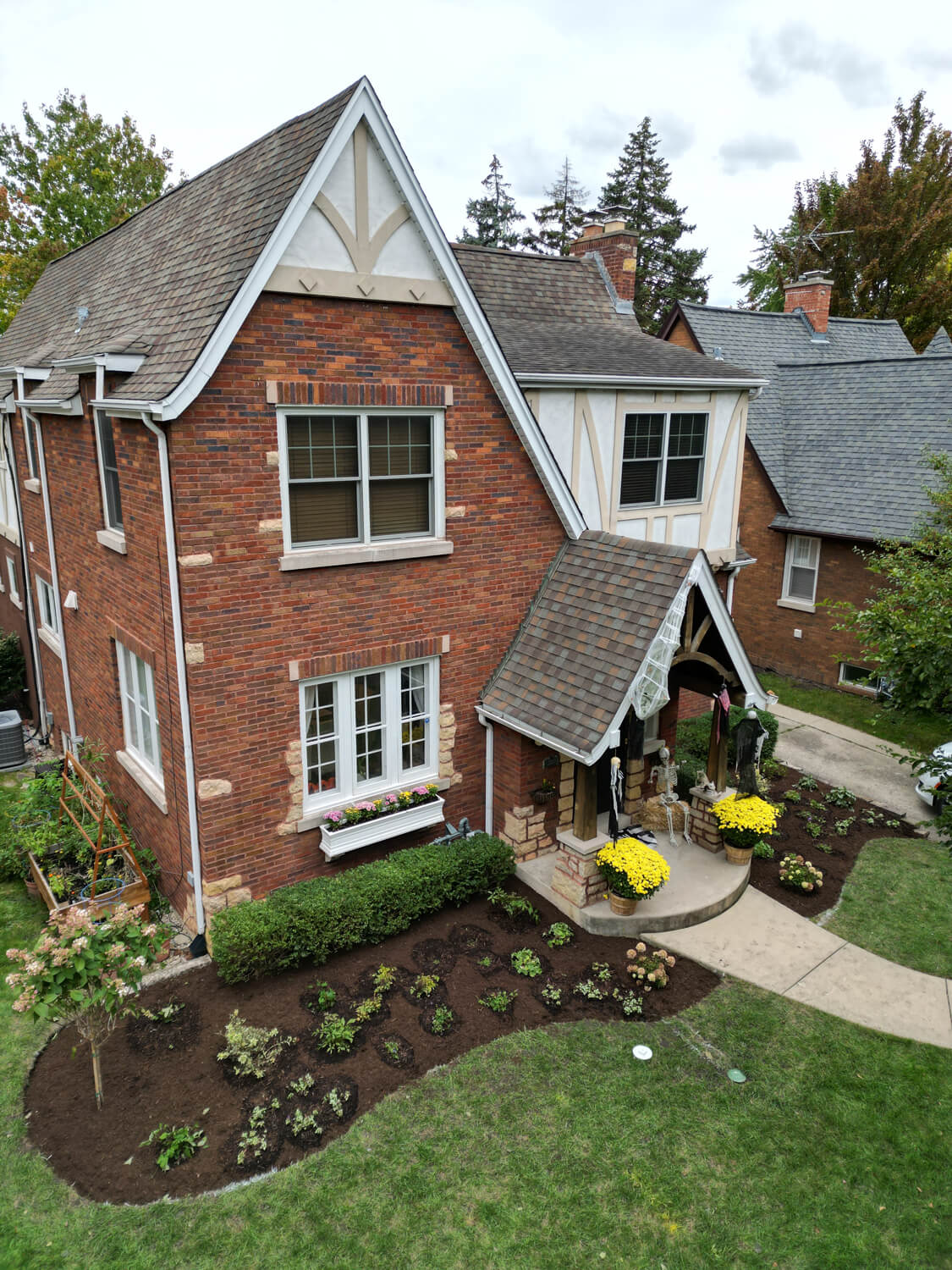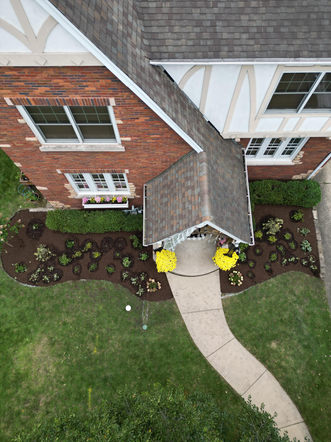 In this front yard, we seized the opportunity to enhance existing beds and hedges, creating a timeless, fresh look. We expanded the beds to incorporate year-round blooming perennials and shrubs, while addressing drainage concerns by burying a downspout and removing outdated flagstone edging. This project showcases our team’s ability to breathe new life into existing landscapes, making them not only enjoyable but also a topic of conversation once again.