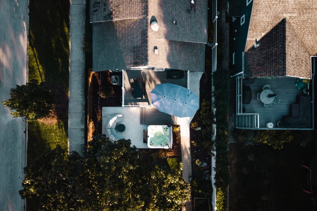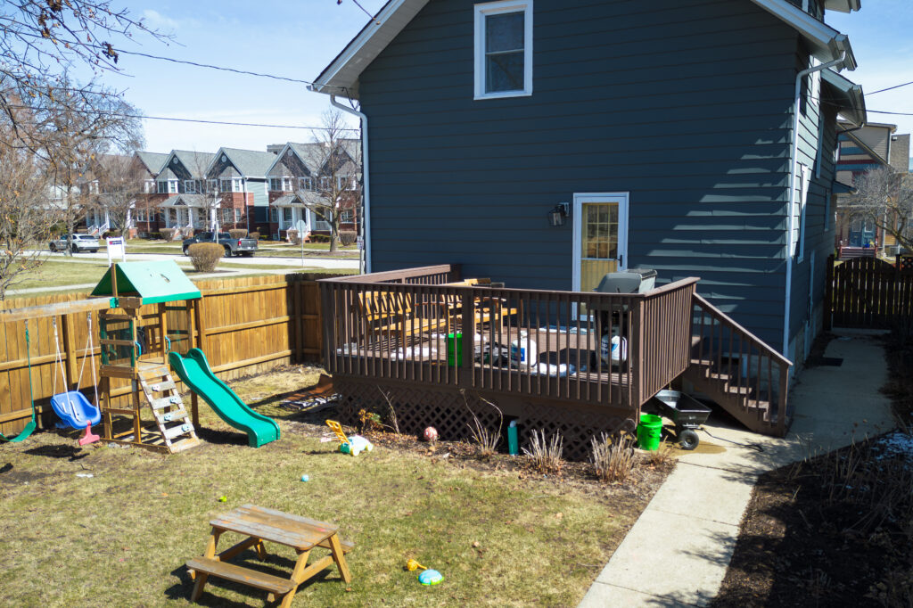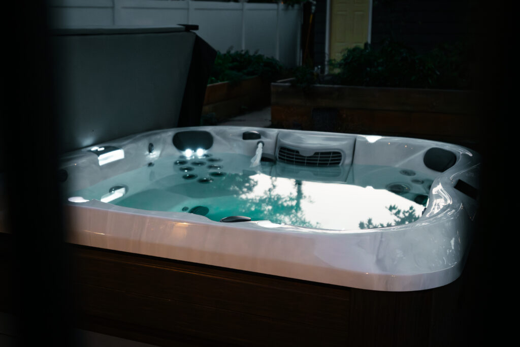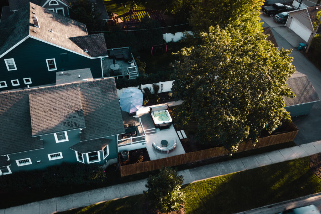 This backyard originally had an old, unsafe deck that closed off the space and made it feel smaller than it really was. Our team redesigned it with a new composite deck featuring multiple lounging levels and seamless access to the spa. The result is an inviting outdoor retreat ready for countless relaxing nights in the spa.