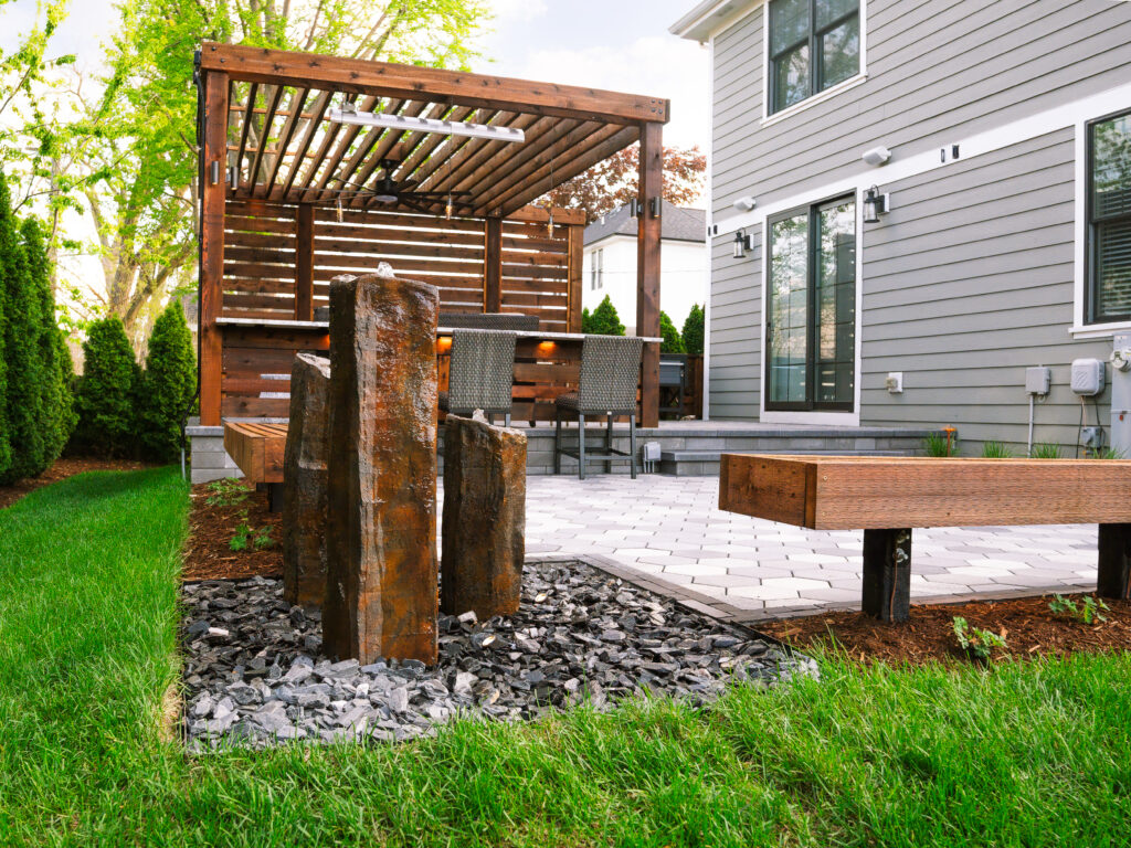 Water is often the missing piece in backyard designs. It harmonizes with the fire, earth, and entertainment elements to create a balanced and inviting environment. Whether you’re drawn to the soothing sounds of running water, the increased privacy, or the unique visual appeal, a water feature is an investment that enriches both the form and function of your outdoor space.